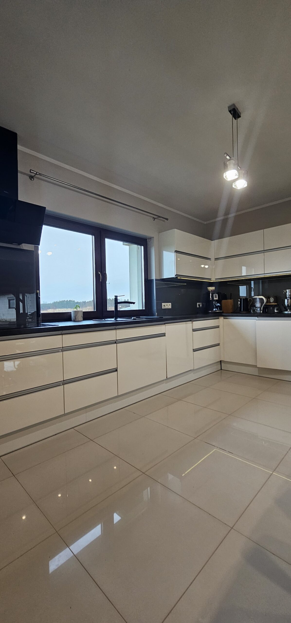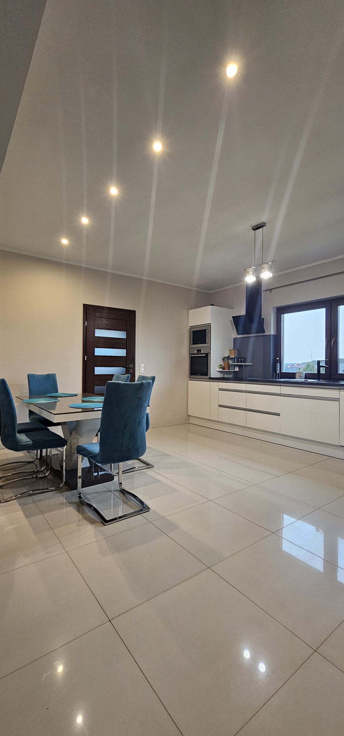 – otwarta kuchnia z jadalnią w zabudowie meblowej z wyposażeniem ( płyta indukcyjna, pochłaniacz, mikrofalówka ,piekarnik elektryczny