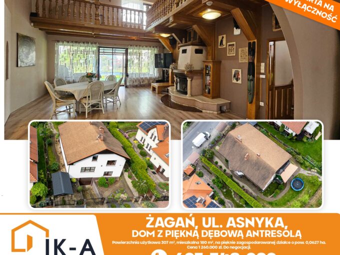 Żagań ulica Asnyka , dom z antresolą na działce o…